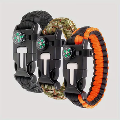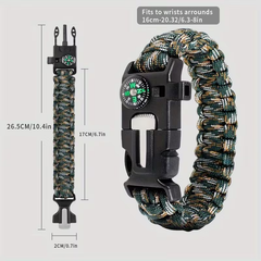 The perfect 5 in 1 survival bracelet includes both a whistle, a compass a cutting, a fire starter and a rope. Handmade bracelet made from high-strength 550 Type III paracord. Paracord, also used for parachutes, is durable and lightweight. Comes in a beautiful gift pouch.